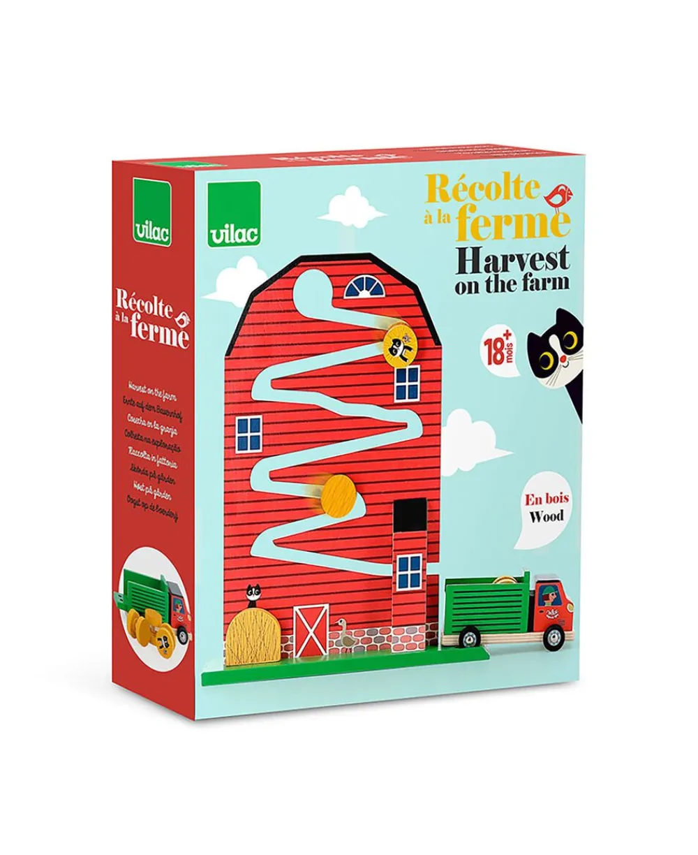 Sjovt aktivitetslegetøj med rullende halmballer, en sød kat og en lastbil med hjul. Hjælp landmanden med høsten og lad de 3 rundballer zig-zagge gennem laden til den ventende lastbil. Flot og farverigt dekoreret med en lille kat, som kigger op fra sit gemmested i halmen.