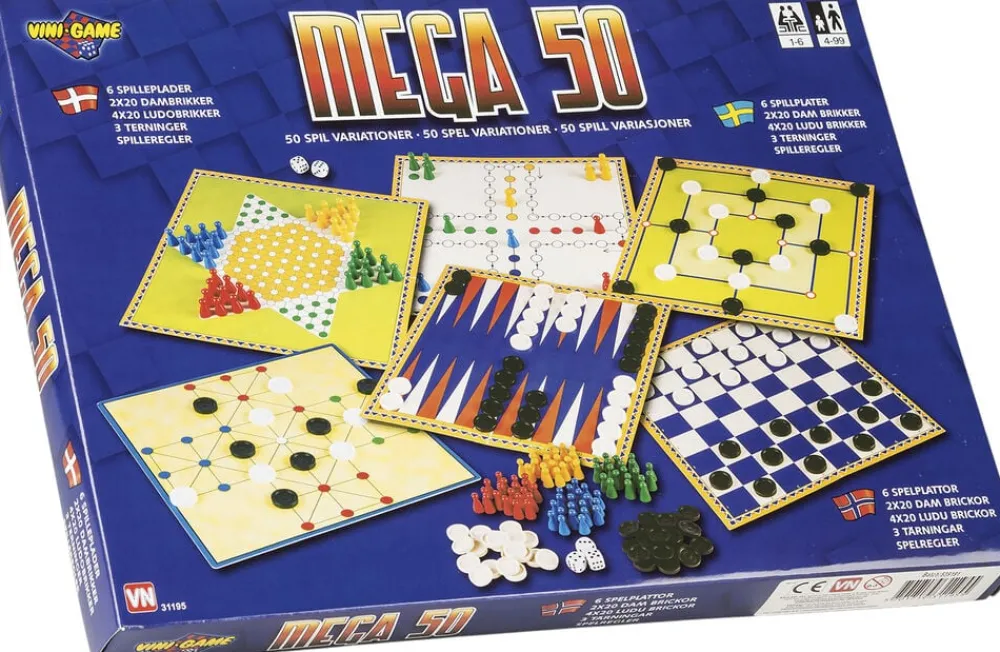 Mega 50 spillemagasin Med 50 forskellige spilvarianter,fx ludo, mølle, dam og backgammon