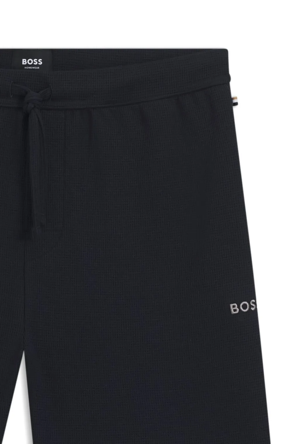 Invester i komfort i fritiden med vaffelstof i bomuldsblanding fra disse pyjamasshorts fra BOSS herretøj. Broderet med et diskret logo