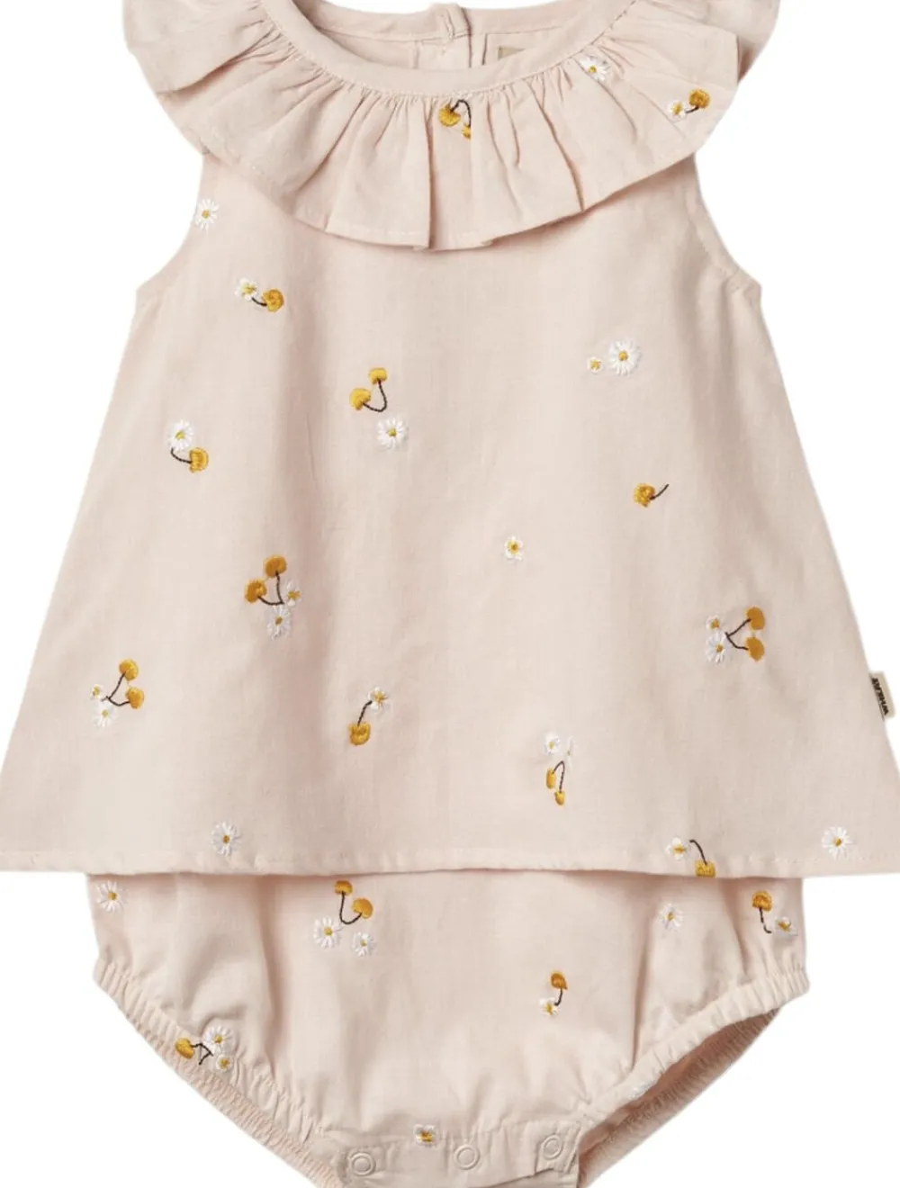 Yndig ærmeløs bodykjole i vævet økologisk bomuld til din baby. – Fin krave med læg og rynk – Knaplukning bagpå – Bærestykke udover, som ligner en kjole – Trykknapper i bunden for bedre komfort – Wheat allover broderi Wheats yndige bodykjoler har detaljer, prints- og farver, der emmer af sommer. Den har et flatterende snit, der ligner en kjole udover bodyen. Dragten har knaplukning bagpå og bodyen har trykknapper i bunden, som gør det nemmere for dig at iklæde dit barn. — – Standard 100 ved OEKO-TEX® – 100% økologisk bomuld – Produktet er GOTS-certificeret — – Standard 100 af OEKO-TEX® – 100% Økologisk bomuld – Produktet er GOTS-certificeret