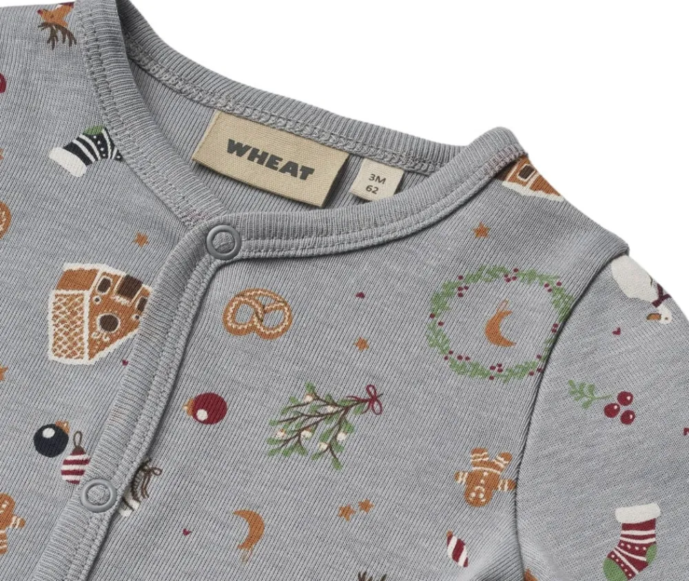 Stribet 2-delt pyjamas i blødt økologisk bomuld til juniorbarnet.- Blød langærmet T-shirt – Elastik i taljen på bukserne – Stribet Wheats bløde nattøj er behageligt at have på og er perfekt til de kolde efterårs- og vinternætter. Pyjamassættet kommer med matchende T-shirt og bukser. T-shirten er langærmet med kontrastfarve ved halsudskæringen, hvor bukserne har en blød elastik i taljen. — – Standard 100 by OEKO-TEX® – 100% Økologisk bomuld