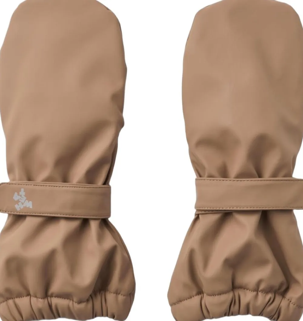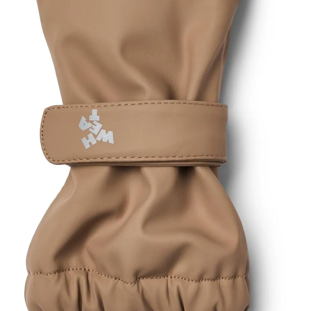 Praktiske vandtætte luffer med velcrostrop til dit barn. – Foret med blød fleece – Elastik ved manchet, så de lukker af for regn og slud – Justerbar velcrostrop omkring håndleddet – Refleksdetalje Wheat’s klassiske regnluffer er både behagelige og praktiske at have på. De er vandtætte og har et blødt fleecefoer, som gør dem perfekte til de evigt skiftende sæsoner. Regnlufferne har en justerbar velcrostrop om håndleddet for at sikre, at vanterne bliver på plads. Der er også elastikker ved kanterne, så de kan fastgøres udenpå overtøjets ærmer. — – Vandsøjletryk: 8. 000 mm – Alle sømme er vandtætte og svejset – PFC-fri – Fluorfri vand- og smudsafvisende finish (BIONIC FINISH ECO) – GRS-certificeret — Standard 100 by OEKO-TEX® 100% Genanvendt polyester med polyurethane coating Foer: 100% Genanvendt polyester