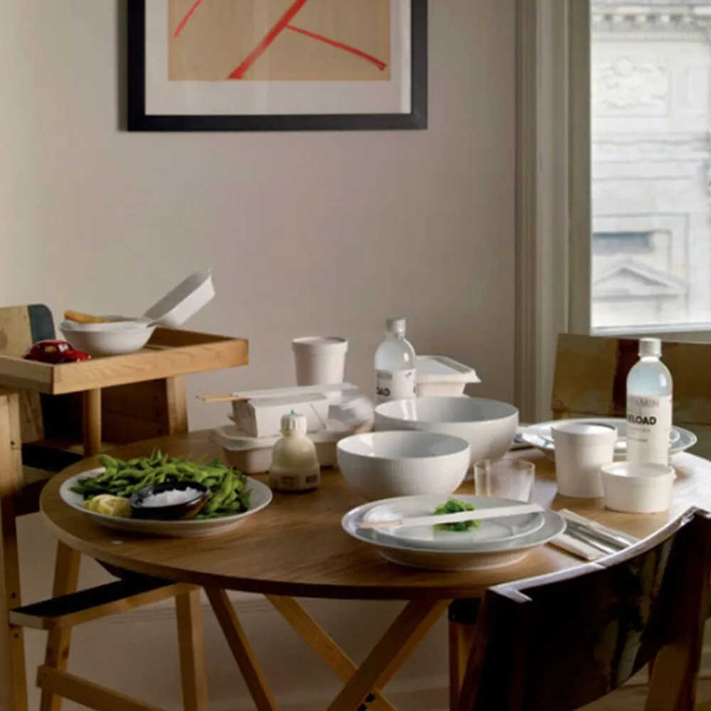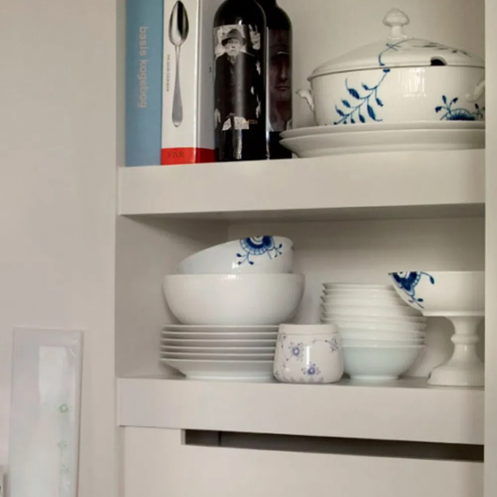 Det hvid riflet spisestel blev designet i d. 19. århundrede. Det er elegant og iøjenfaldende, og gør sig godt, både til hverdag og festlige lejligheder.