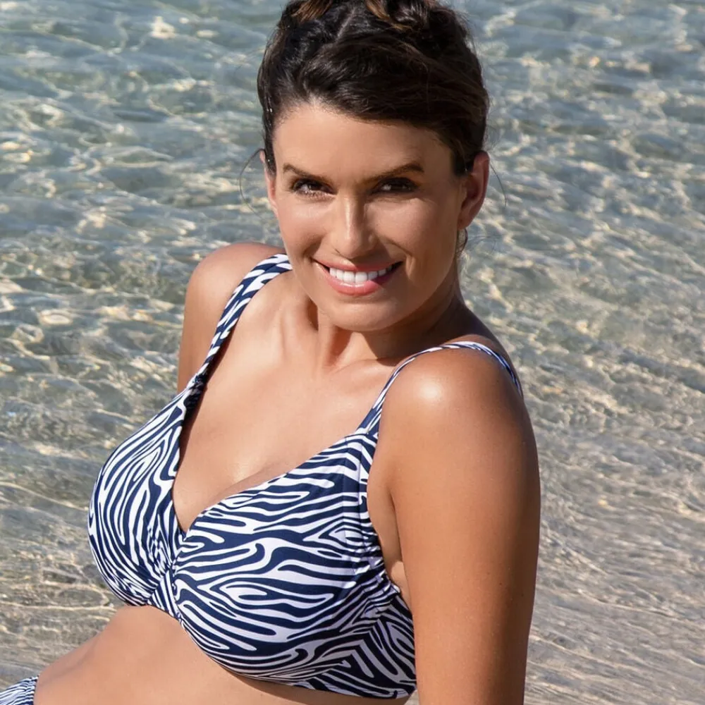 Underwired bikinitop med aftagelig blød polstring. Koplinjen kan justeres på siden for optimal pasform. Aftagelig blød polstring Cup line kan justeres på siden Justerbare skulderstropper Robust velcrolukning bagpå Hurtigtørrende materialeblanding med strækkomfort Eco-certificeret