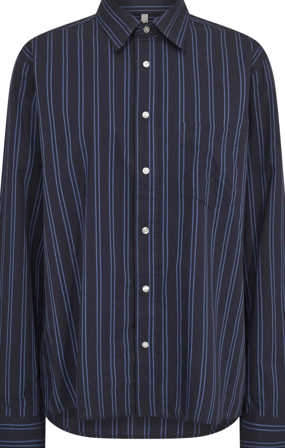 Lækker pyjamasskjorte i bomuld og bambus-viskose i navy/blå strib