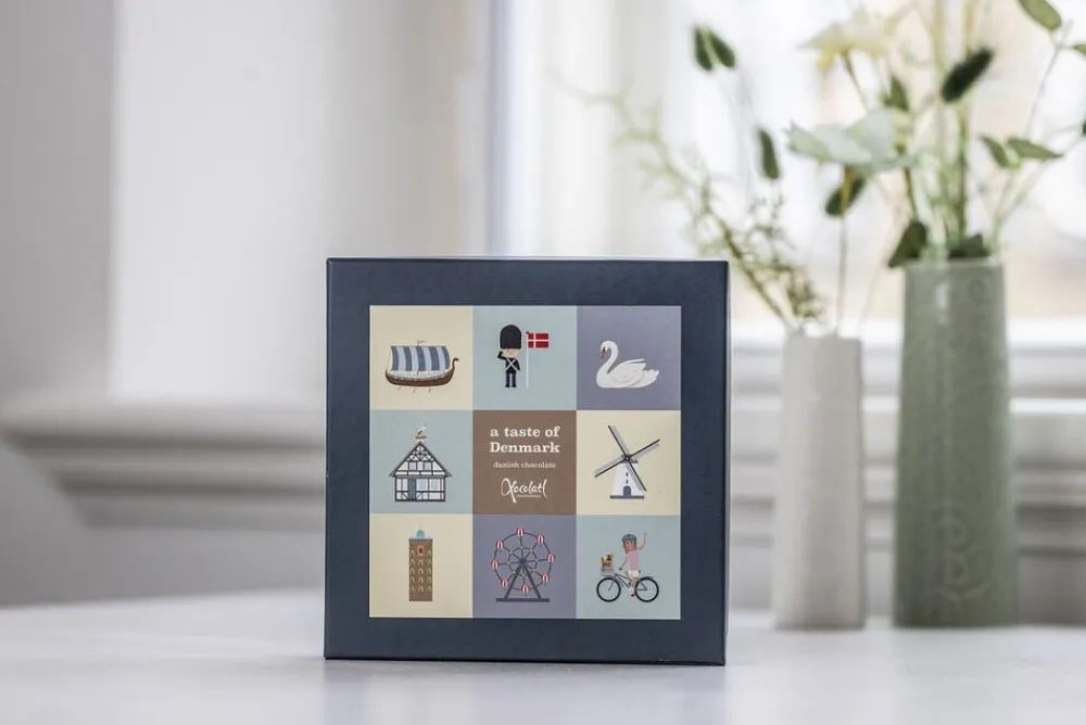 flødekaramel, mørk chokolade med appelsin og mørk chokolade med mint.