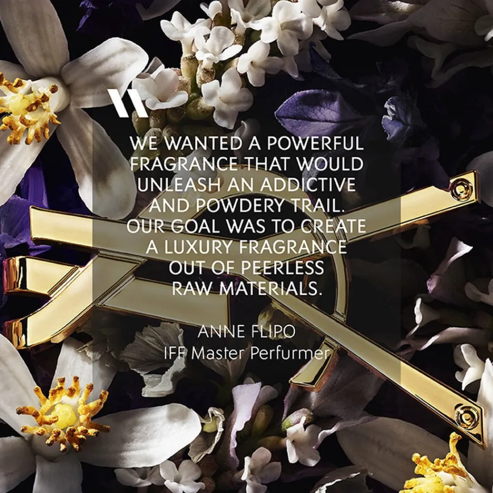 Parfumen til en stærk, modig og fri kvinde, der eksperimenterer med sin frihed. En ny attraktiv kombination, der forener de to mest ædle materialer i verden, guld og platin.