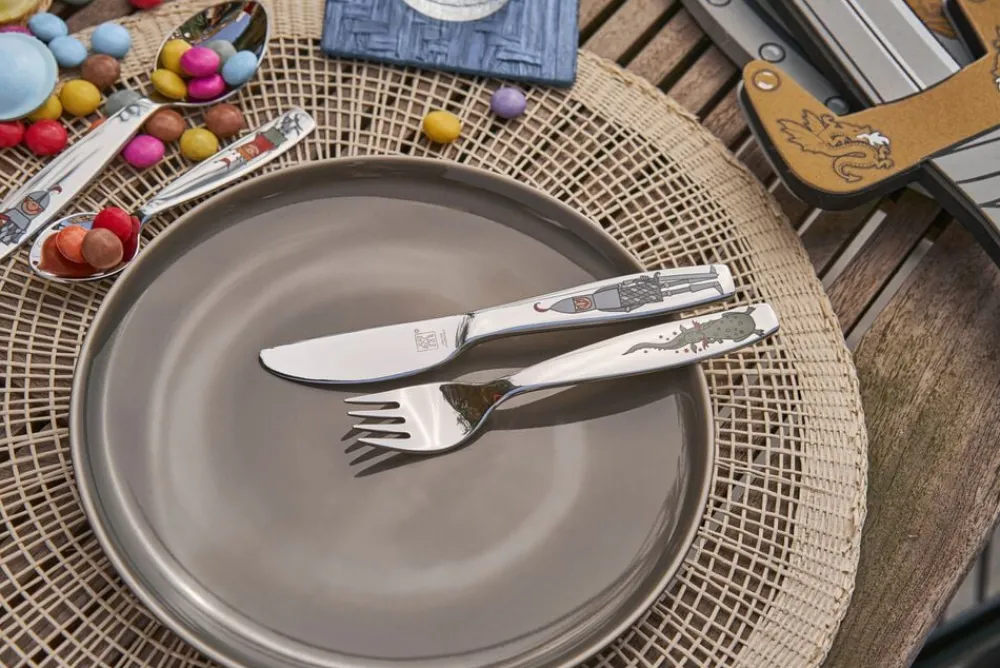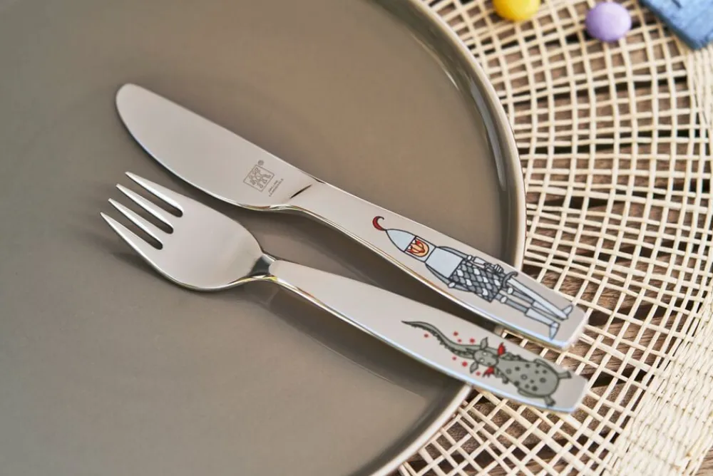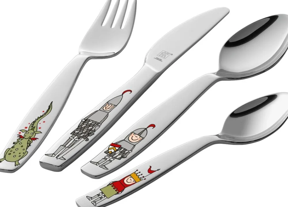 Det førsteklasses spisebestik til børn fra ZWILLING er lavet af solidt, rustfrit stål, som er meget robust og korrosionsbestandigt. Motiverne af de modige riddere falmer ikke, selv når bestikket rengøres i opvaskemaskinen. Med spisebestikket i fire dele til børn fra ZWILLING er du sikker på at give dine børn en helt speciel oplevelse under middagen.